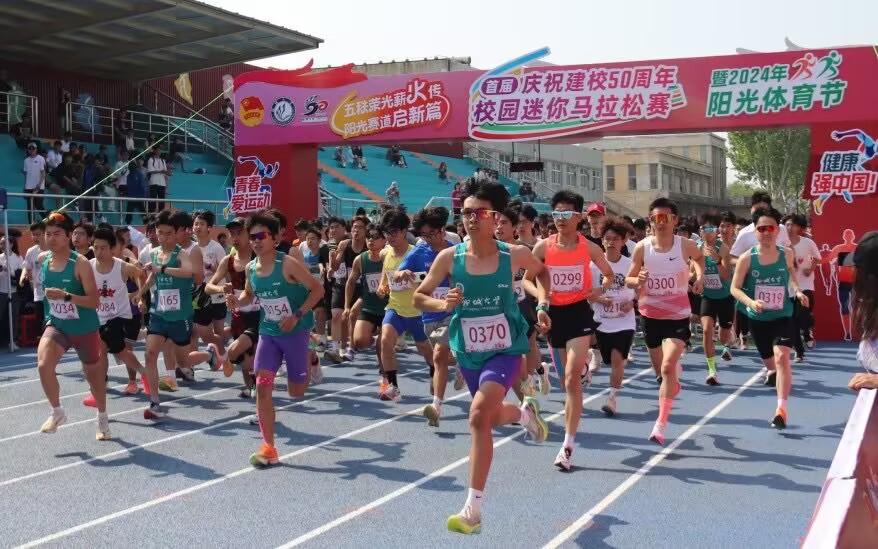 于东校区田径场参加建校50周年校园迷你马拉松赛暨2024年阳光体育节。第一版主