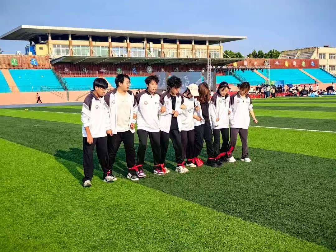 2025年“活力绽放,青春飞扬”趣味运动会。 本次趣味运动会共有旱地龙舟、盲行巡逻、绳影穿梭、兔子跑步、八人九足竞速赛等六个运动项目。伴随着各代表队的有序入场,在主持人慷慨激昂的开幕致辞中,本次趣味运动会正式拉开帷幕。在“旱地龙舟”项目中,队员们跨上充气龙舟,在50米的赛道上,齐声喊着“一二、一二”的口号,步伐一致地操控龙舟奋力前行。接力环节更是紧张刺激,队员们迅速交接,全力以赴向终点冲刺,充分展现了团队的默契与协作。“盲行寻锣”项目则考验着队员间的信任与默契。6名队员依次蒙眼出发,在队友的语音指引下穿越赛道。尽管视野受阻,但同学们凭借坚定的步伐与队友的鼓励,成功抵达终点。在“绳影穿梭”项目中,第一版主