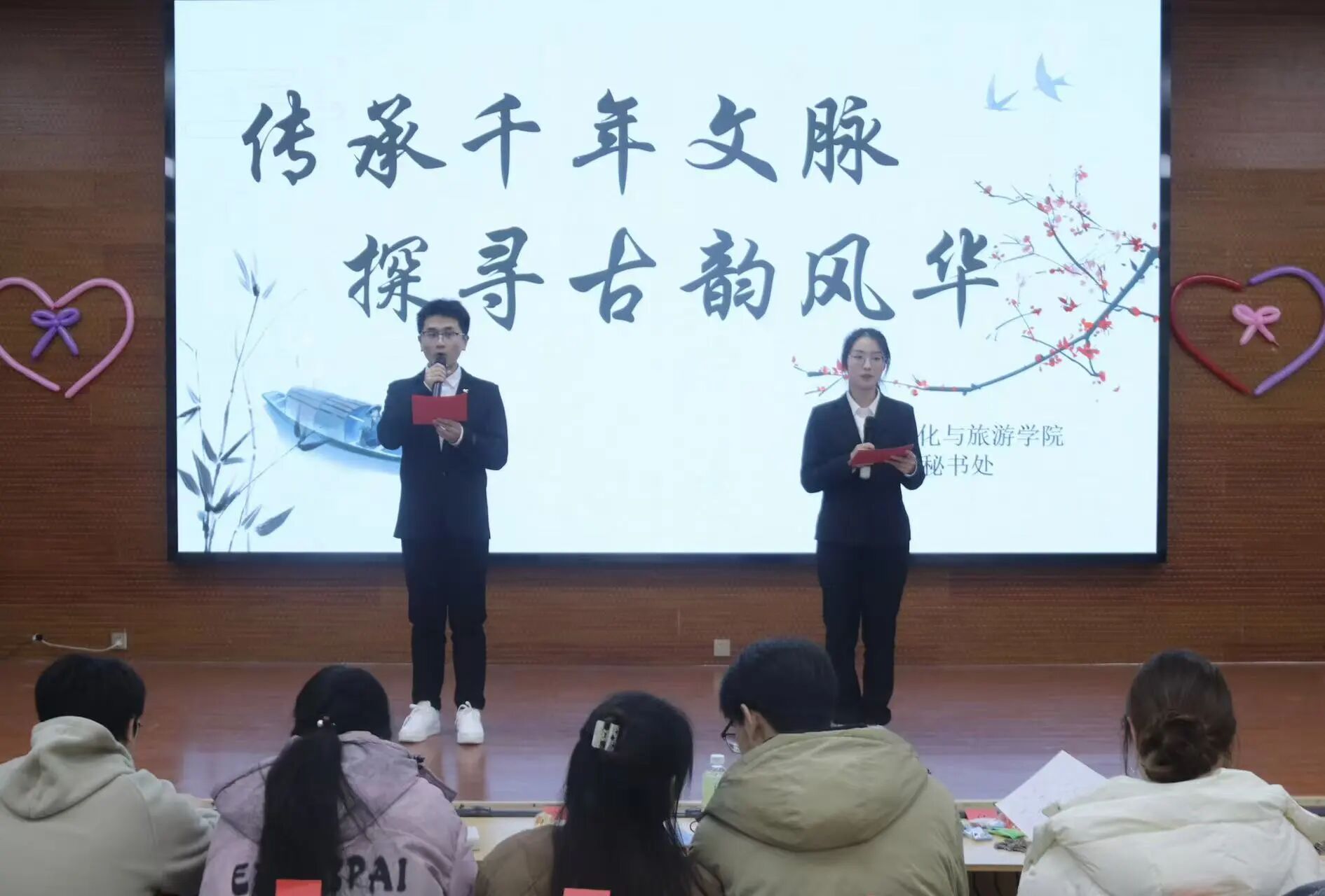 于6#A106报告厅举办“传承千年文脉,探寻国韵风华”传统文化知识大赛决赛。 本次比赛分为传统文化PPT讲解与知识竞答两个环节,兼具知识性与趣味性。伴随着活力四射的开场舞表演,现场氛围被瞬间点燃,第一环节PPT讲解正式拉开序幕。 参赛选手们从容登台,各展风采,宋文馨以徐州汉文化体验经历为切入点,条理清晰地梳理了中华传统文化的起源脉络、核心类别、传承路径及当代价值,从远古宗教信仰、石器文明溯源,到先秦诸子百家争鸣、唐宋文化鼎盛繁荣,其讲解内容详实、逻辑严谨,生动勾勒出中华文明绵延不绝的发展轨迹。 李心悦则聚焦东昌葫芦雕刻这一地方特色非遗技艺,系统阐述了葫芦雕刻与东昌府独特地理气候的深度关联,追溯其始于宋代、盛于明清并借漕运融合多派艺术精华的发展历程,详细介绍了煮晒发酵、线透浮镂、染色修饰等复杂制作工序,通过戏曲人物、花鸟山水等经典题材,诠释了作品中蕴含的福瑞吉祥文化寓意,尽显地域文化魅力。 PPT讲解环节结束后,“天选之子”互动游戏环节精彩接续。选手们通过随机抽取编号领取任务,参与互动,方言念绕口令等趣味挑战更是引得现场笑声连连,为紧张的赛事氛围注入了轻松活力。 随后,比赛进入白热化的传统文化知识竞答环节。选手们精神抖擞、蓄势待发,眼神中满是对传统文化知识的热忱与角逐的期待。该环节涵盖历史典故、传统技艺、文学经典等多个领域,既考验选手们的知识储备深度,又锤炼其临场应变能力。答题过程中,选手们反应敏捷、对答如流,在激烈的脑力比拼中碰撞出智慧火花,充分展现了第一版主