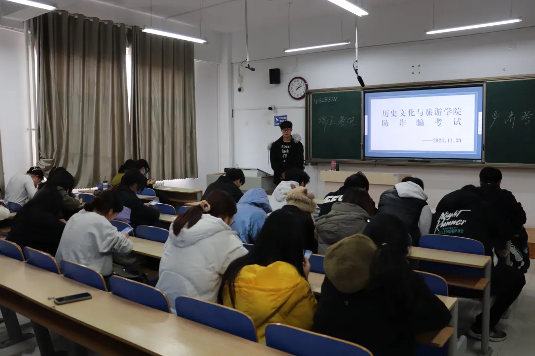 于各教室举办学生防诈骗考试。 此次防诈骗考试得到学院的高度重视,并在学院的统一部署下进行。学生积极响应并参与考试。考试内容紧密围绕常见诈骗案例与防范知识,涵盖网络诈骗、电信诈骗、兼职诈骗、交友诈骗等多种诈骗类型的特点、识别方法以及应对策略,在全面增强学生的防诈骗意识与能力的同时,使其能够有效识别各类诈骗陷阱并进行防范,切实保障自身财产安全。 考试过程中,监考人员各司其职,对考场秩序进行严格把控,保证考试公平公正。学生以严肃认真的态度对待此次考试,展现出对防诈骗知识学习与检验的高度重视。 本次防诈骗考试的成功举办,不仅能够加强学生对诈骗手段的辨别能力,加深他们对防诈骗知识的理解,更有利于提升第一版主