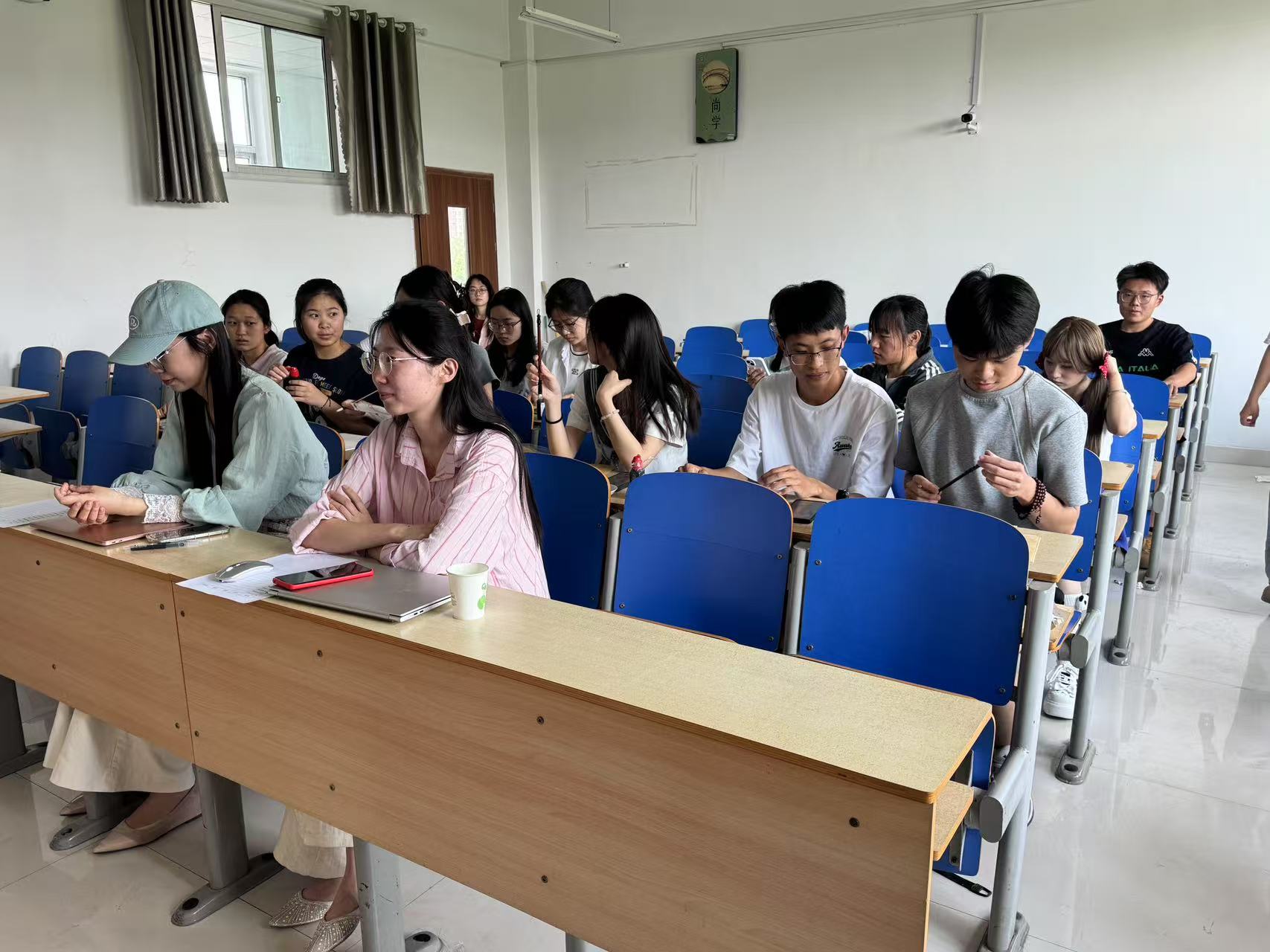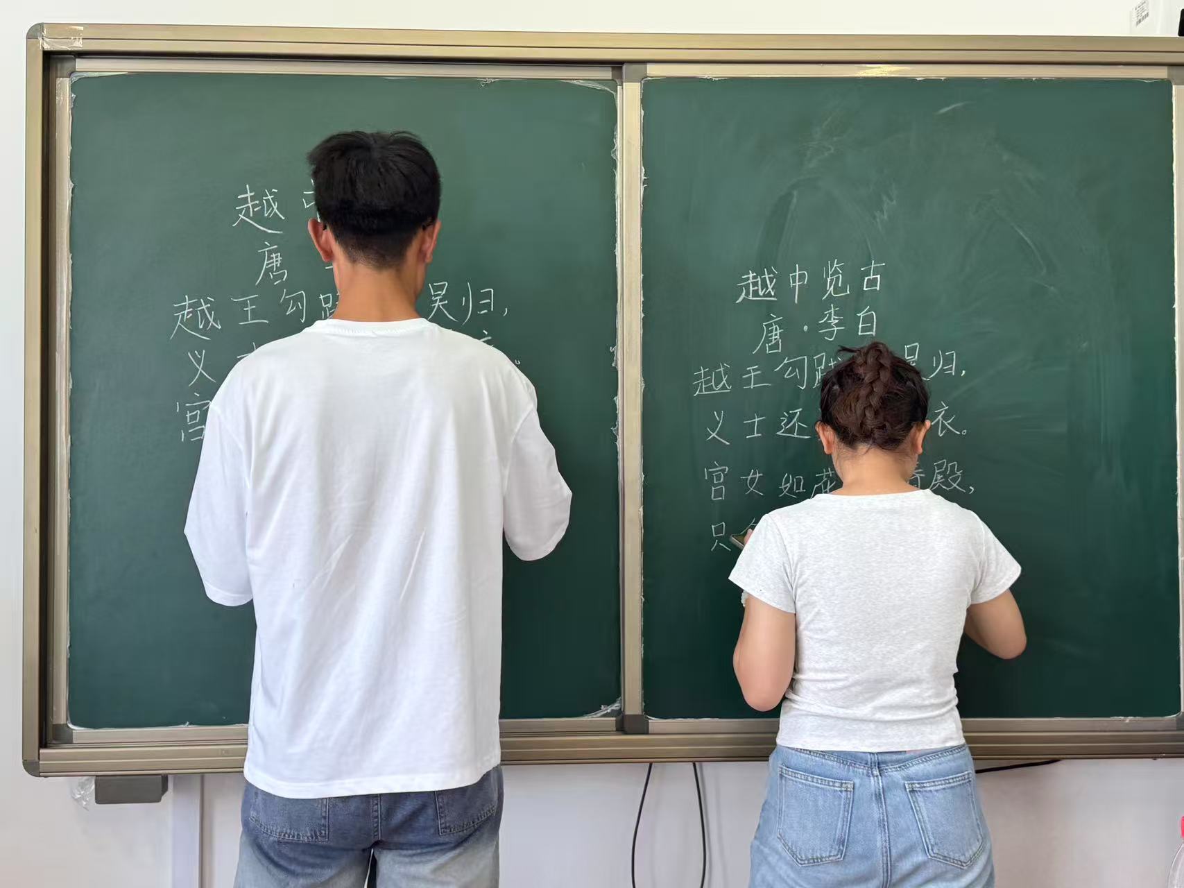 于6#A402教室举办“匠心育教,青春展能”三笔一画师范生技能大赛初赛。 “三尺讲台育桃李,一支粉笔写春秋。”规范书写与创意表达是师范生在未来教书育人的核心素养。本次大赛围绕钢笔字、毛笔字、粉笔字及简笔画四大项目展开,全面考察学生的基本功底与艺术创造力。 在钢笔字和毛笔字创作环节中,学生专注创作,以规范的笔法、流畅的线条,充分展现扎实的硬笔与软笔书写功底,体现他们在教学基本功训练中的坚实积累。 在粉笔字与简笔画创作现场,学生在黑板上展开精彩角逐。比赛以李白诗作《越中览古》为书写内容,学生将诗歌韵律融入笔锋,以工整的板书传递古典文学之美。简笔画创作围绕“海阔凭鱼跃,天高任鸟飞”展开,学生通过简洁流畅的线条和富有创意的构图,将诗句意境具象化,切实展现学生娴熟的绘画技巧与丰富的艺术表现力。学生评委从书写规范、艺术美感、创意构思等方面进行综合评审,最终钟子皓、李迎雪、刘馨、王灵姗、赵义鑫、何杏六位学生成功晋级决赛。 本次活动的顺利举办,不仅有利于推动学生深刻理解教学基本功的重要性,提升其对教学基本功的运用能力,而且有利于激发学生对教师职业的热爱,为营造勤学笃行的育人氛围贡献一份力量。 (供稿:王鑫月 陆雅馨 摄影:陆雅馨 初审:宋佳珊 复审:张程程 终审:尤姗姗)