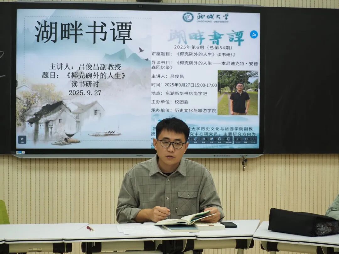 于6#A401教室举办“椰壳碗外的人生”读书会活动。本次活动由学院历史系主任吕俊昌担任主讲人。 吕俊昌以美国学者本尼迪克特·安德森的著作《椰壳碗外的人生——本尼迪克特·安德森回忆录》为切入点,结合当前学术研究的前沿动态与特色方向,为在场学生带来一场兼具理论深度与思想温度的学术分享。吕俊昌将安德森的学术生涯与生活经历紧密联系,帮助学生直观了解安德森在民族主义研究与东南亚研究领域深耕的背后故事。 吕俊昌结合安德森早年的学术探索经历,为学生梳理大学阶段学术研究的核心路径。在此基础上,吕俊昌进一步延伸话题,引入安德森的经典著作《想象的共同体》,并通过生动的历史案例阐释书中核心观点,有效拓宽学生的研究视野。 在互动提问环节,学生踊跃发言,积极提问。吕俊昌耐心倾听,结合自身研究经验与安德森的学术理念逐一进行解答,并给出“向外探寻世界、向内沉淀思考、向下扎根领域”的建议,现场氛围热烈融洽。 本次活动的顺利举办,不仅有助于提升学生的学术认知水平,引领学生走进学术研究的全新领域,而且有助于丰富学生的精神文化内涵,营造浓厚学术氛围,推动学院学术文化建设向纵深发展。 (供稿:黄博雨 姜书泰 初审:魏志鹏 复审:宋佳珊 终审:尤姗姗)