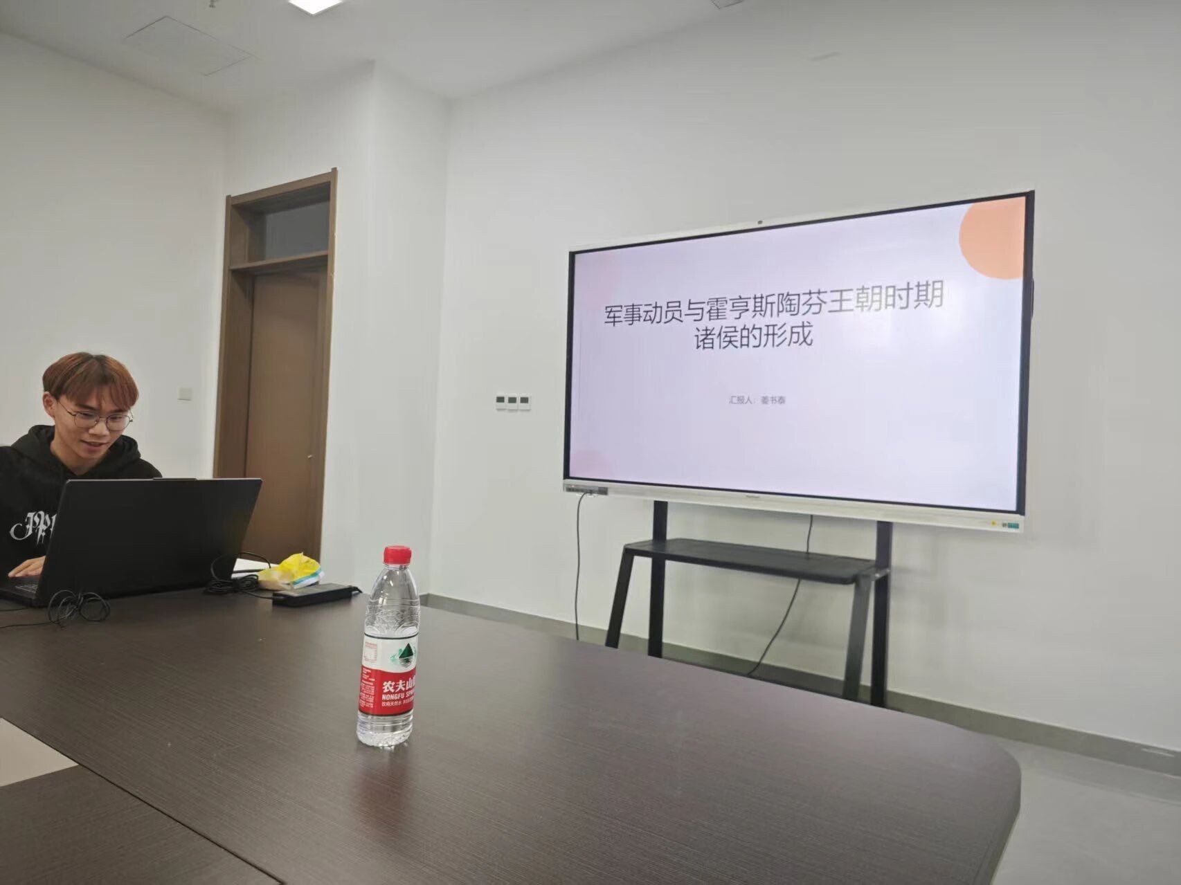 同学积极发言,姜书泰同学就自身的研究方向进行了汇报展示,向与会同学分享了自己的《军事动员与霍亨斯陶芬王朝时期帝国诸侯的形成》一文。在曲阜师范大学张赫名教授、巩宝平副教授、唐睿副教授与史展老师对每篇论文进行了细致点评,既肯定了研究的创新之处,也指出了其中存在的不足,并提出了富有建设性的修改建议。这些专业而中肯的指导,使第一版主