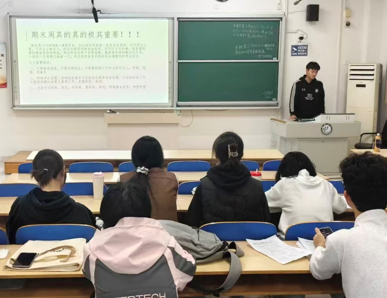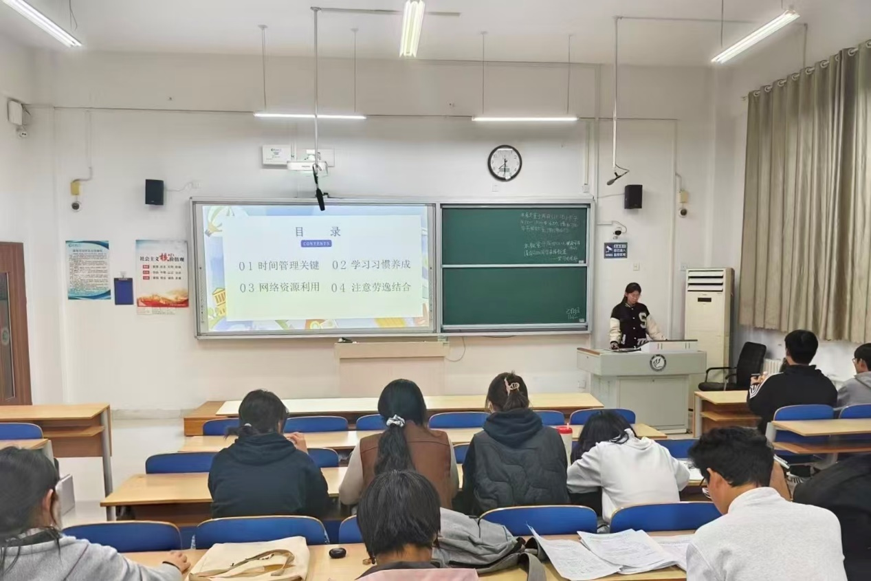 于6#A502教室举办学习经验交流会。 微光分享,解锁学业密码 交流会上,两位主讲人结合自身成长经历,分享实用学习心得。胡书宾聚焦学习与压力的平衡,从课堂专注技巧、课后复盘方法、碎片化时间利用三个方面,鼓励学生以“积跬步”的坚持积累学业底气。刘爽围绕优势挖掘与稳步提升展开分享,结合专业学习特点,建议同学们借助线上资源补短板、依托学科竞赛提升能力,以期更好地提升综合素质。 政策解读,明晰成长路径 针对学生关注的奖学金申请、评奖评优等核心问题,主讲人进行全面精准的解读。他们围绕各级各类奖学金的申报条件、时间节点、材料规范等关键内容,逐一梳理要点,明确成绩占比、综合素质测评指标等细节。同时,他们结合自身申报经历,提醒学生关注评选细节、提前规划,让每一份努力都能获得对应的认可。 笃学同行,共解成长困惑 互动提问环节,学生积极提问。主讲人结合政策要求,耐心细致地解答,现场氛围热烈融洽。学生纷纷表示,这场交流会不仅学到了实用的学习方法,更感受到了学院的温暖力量,进一步坚定了携手共进、笃学不怠的信念。 本次学习经验交流会的顺利举办,是学院“五位一体”学风建设体系建设的生动实践。交流会以榜样为桥、以分享为媒,既让优秀经验得以传递,又凝聚学院学生共识,为营造互帮互助、共同进步的优良学风作出贡献,为助力学生全面成长成才注入温暖动能。 (供稿:胡书宾 陆雅馨 初审:陆雅馨 复审:宋佳珊 终审:尤姗姗)