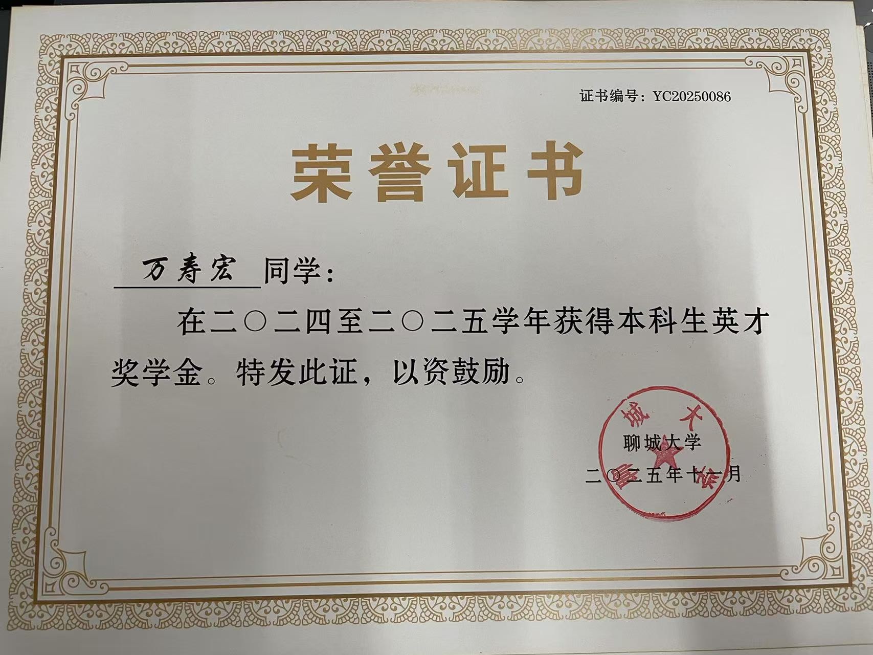 2025迎新文艺演出志愿服务先进个人 国际人才英语考试良好证书 事迹材料 潜心学业 史海领航 自拿到录取通知书的那一刻起,一颗对史学的向往和热忱之心便在万寿宏的心中发芽。刚上大学,对环境的陌生、学业的迷茫、生活的无助可能是所有大一同学的“必答题”。三年里,面对众多问题和挑战,他仍坚持独立完成一项项学业和工作任务。三年图书馆借阅量连续上榜,在大二时入选季羡林学院基础学科拔尖班。大学四年,他不断积累阅读,通过经济学、法学开阔学科视野,在不断坚持努力下连续三年获得校级一等奖学金,并夺得国家奖学金、第九届全国大学生史学论坛优秀奖、英才奖学金、优秀学生干部等诸多荣誉。大三下学期,他积极准备免试研究生,在斩获7所985、211高校的offer后,成功录取至上海大学世界史专业攻读硕士研究生。 扎更同窗 服务同学 “纯真而不欠闻达,善良而不失坚强。把生命高举于尘俗之上,又融化在社会之中”,从小,万寿宏就喜欢阅读历史上的名人传记,立志长大后也要为人民服务。大一时,他便加入了学生会并在班级里担任了班长。他积极在思想上引领班级和学院同学,到孔繁森纪念馆、聊城中国运河文化博物馆等地方红色资源进行学习;大三那年,他凭着自己出色的表现成功竞聘学校和学院学生会主席团成员。但刚接受这一担子的他就寸步难行,面对突增的工作压力和日益紧张的学业,他常说:“生活就是一件件事情摞起来,不要自我消耗,让心中有一根弦,分而化之”。他冷静观察,沉着应付,稳住阵脚,埋头实干,最后想到了解决之策——还是要深入同学,把“广大同学满不满意”作为衡量工作成效的标准,积极开展“我为同学做实事”活动,增强学生会服务同学的主动性、创新性。在学院,他组织复刊沉寂了35年的学刊《史苑》,以此为平台为同学们提供练笔机会,为将来从事实际工作打下。他还带领同学们丰富实践阅历,主持和参与社会实践和志愿服务项目4项,赴4省5地开展“沿着运河说运河”活动,不断提高社会实践的参与面、覆盖面、受众面,致力打造一批党政支持、群众欢迎、学生受益的社会实践品牌活动。 深耕区域 联通中太 大二时,在导师王作成教授的指导下,他积极投身区域国别研究,成为太平洋岛国研究中心一名助理研究员。他经常在教学楼内通宵达旦,他可以几经反转,到国家图书馆借阅、托外国朋友扫描,只为得到一份可能承载实事的档案。他积极参与学院老师国家社科基金项目、山东省人文社科规划课题、“青创人才引育”团队等项目,他发表期刊论文1篇,会议论文3篇,受邀参加第三届太平洋与太平洋国家史论坛、第六届大洋洲国际学术研讨会等学术论坛,参与编译《中国—太平洋岛国应对气候变化合作中心 资讯》28篇,以实事求是的精神,通过区域国别学这一大国之学、新兴之学、在文献中寻求太平洋岛国现代化发展的历史路径。此外,他也积极用科研赋能实践。他多次参与岛国中心的外事活动,“汉语桥”、中国—太平洋岛国应对气候变化培训班和与中国式现代化同行”中外大学生读书会等志愿翻译活动,在一次次实践中巩固中太民心相通桥。 于道各努力,千里自同风。万寿宏的事迹也是千万聊大学子的事迹缩影,从东湖到羡林湖,跨越彩虹桥,全校青年学子在共读一本成长之书的同时,也在奋斗各自的光明未来!