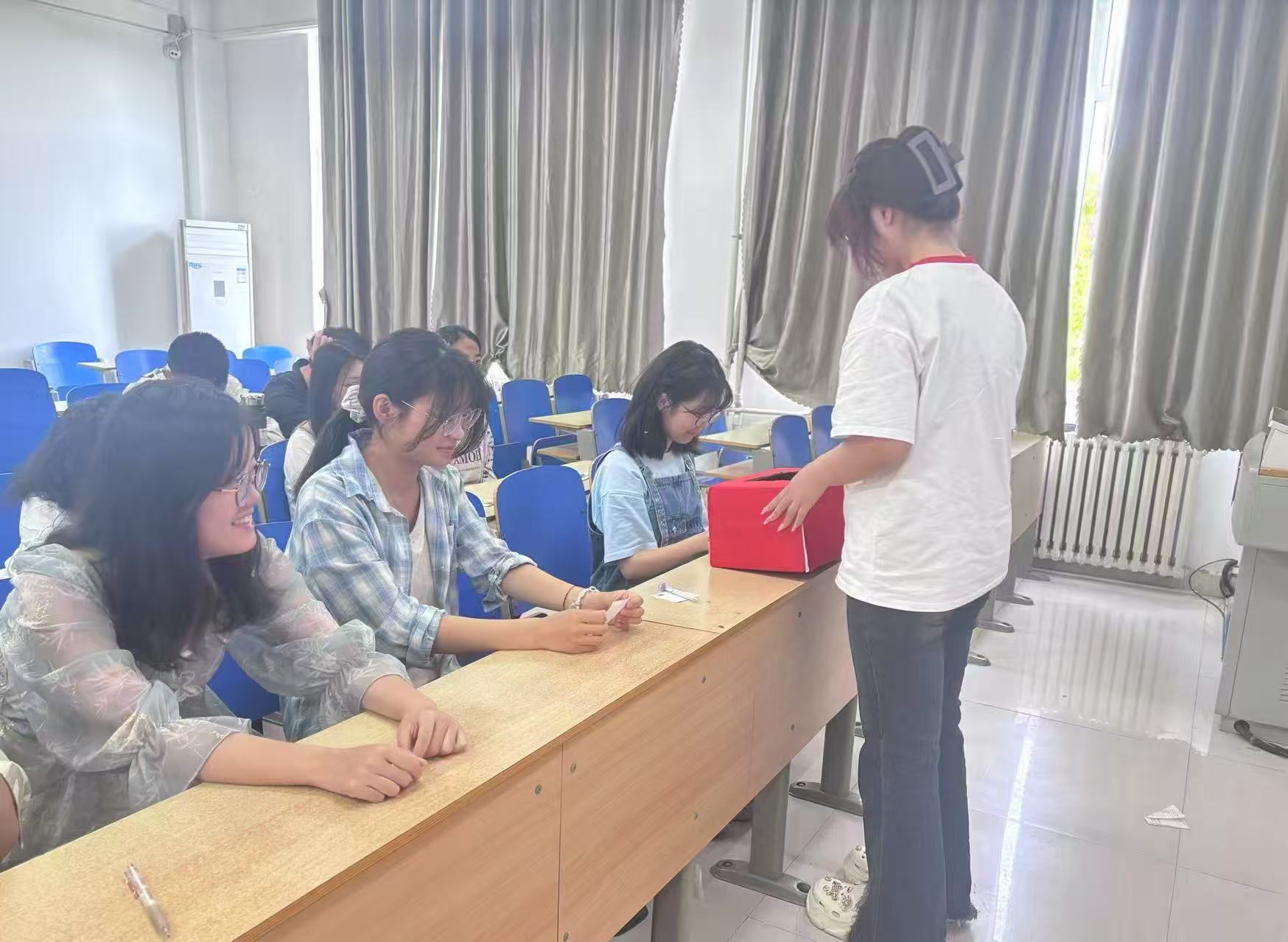 为深化同学们的心理健康意识,构建积极向上的校园心理环境,5月18日,我院于6#A305教室举办“开启内心密码,收获美好心情”心情盲盒主题活动。 活动现场,在主持人的引导下,同学们匿名写下内心烦恼,将承载着真实情感的便签纸投入精心装饰的盲盒中。这些便签内容丰富,不仅包含了同学们对学业压力的倾诉,更涉及同学们对人际关系的困惑以及家庭矛盾的烦恼。 欢快的击鼓声拉开了“击鼓传花”互动环节的序幕。随着鼓点声的响起,同学们开始传递象征物,鼓声停止时,手持象征物的同学需从盲盒中随机抽取一张纸条,并清晰朗读纸条上的内容,其他同学则结合自身经历,为纸条中的困惑提供具体可行的解决方法。 在“心灵分享”环节,同学们敞开心扉,积极分享各自面对生活挑战的应对策略。部分同学还特别分享了自己的成长故事,详细讲述他们如何通过调整心态,在逆境中汲取力量。这些真实的心理历程分享,不仅展现了心理支持的重要性,还引发了在场同学的强烈共鸣。 此次活动通过匿名书写的方式帮助同学们打破心理壁垒,释放内心积压的情绪,完成初步的自我心理疏导,同时还借助趣味互动与公开讨论,将个体的困扰转化为集体议题,让同学们在共鸣中消解孤独感,获得情感上的慰藉。 (供稿:郭艺泽 寇舒云 摄影:第一版主