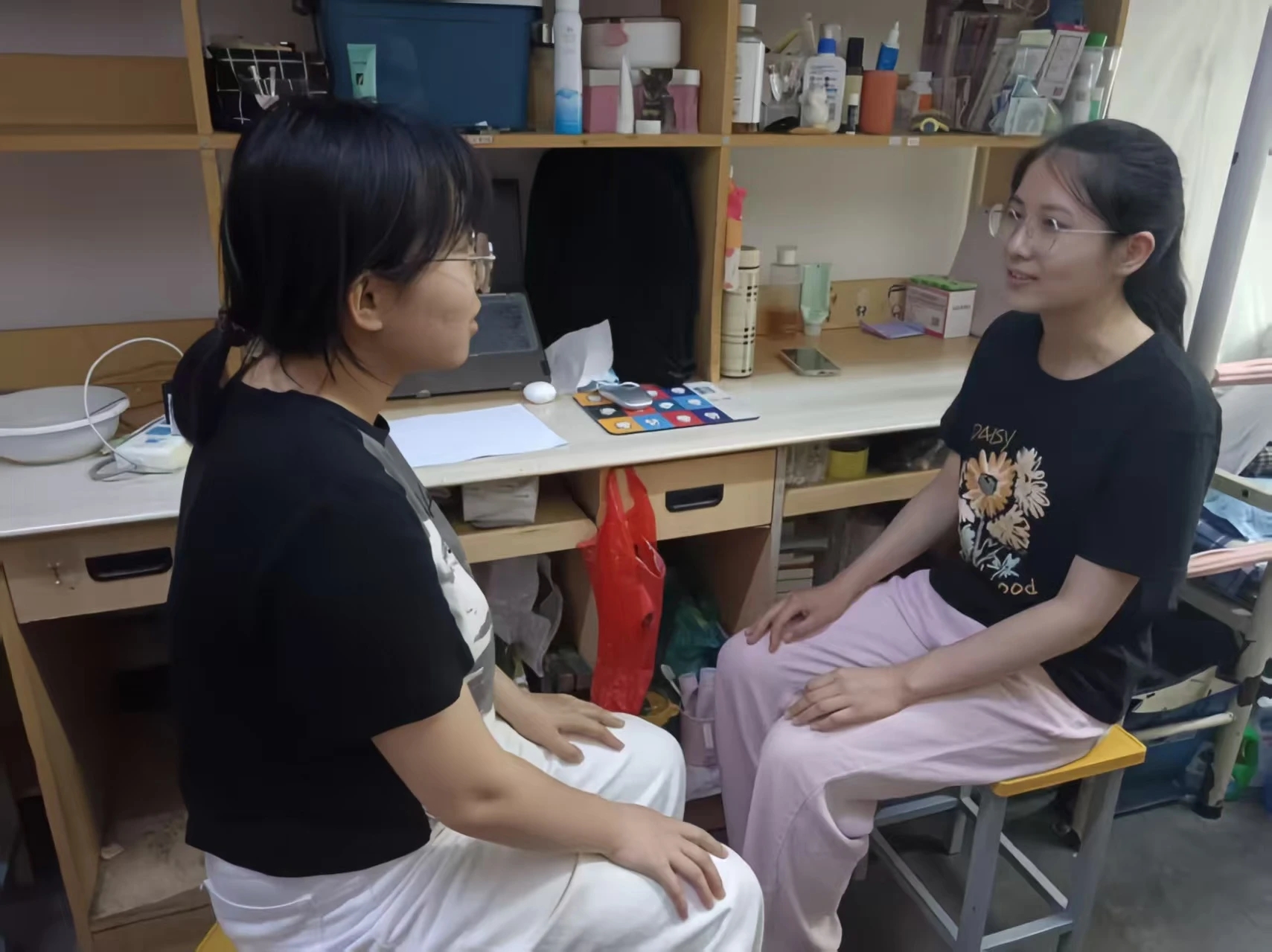 举办了“宿舍温情访,青春壮志传”毕业生宿舍走访活动。 在走访过程中,心理健康发展中心的成员们深入每一间毕业生宿舍,与即将离校的学长学姐们亲切交谈。交流内容不仅涵盖求职面试技巧、升学备考经验、未来职业规划等多个实用话题,还特别关注了毕业生的心理状态。针对毕业生普遍反映的“初入职场如何快速适应新环境”“考研失利后如何调整心态重新出发”等现实困惑,成员们充分发挥专业优势,既分享心理学专业知识,又结合自身成长经历,提供了许多切实可行的建议,同时重点介绍了正念冥想练习、情绪日记书写等操作性强的心理调节方法。 在全面走访的基础上,心理健康发展中心特别关注了三类需要重点关怀的毕业生群体。对于暂时还未落实工作的毕业生,成员们不仅耐心倾听他们的求职困惑,还帮助梳理各类就业信息资源,并一对一指导制定个性化的求职计划。面对选择继续考研的毕业生,成员们准备了详细的心理调适方案,包括压力管理技巧和科学的备考建议。而对于需要异地求职的毕业生,成员则专门建立了线上联络群组,确保他们获得持续的情感支持和心理辅导。活动过程中,低年级成员也抓住宝贵机会,虚心向毕业生请教如何高效管理时间、如何平衡学业与实践活动、怎样提升综合素质等经验心得,整个交流过程温馨而富有成效。 此次毕业生宿舍走访活动,不仅为即将离校的学子们送去了特别的温暖与关怀,更通过面对面的深入交流搭建起跨年级沟通的桥梁。未来,第一版主