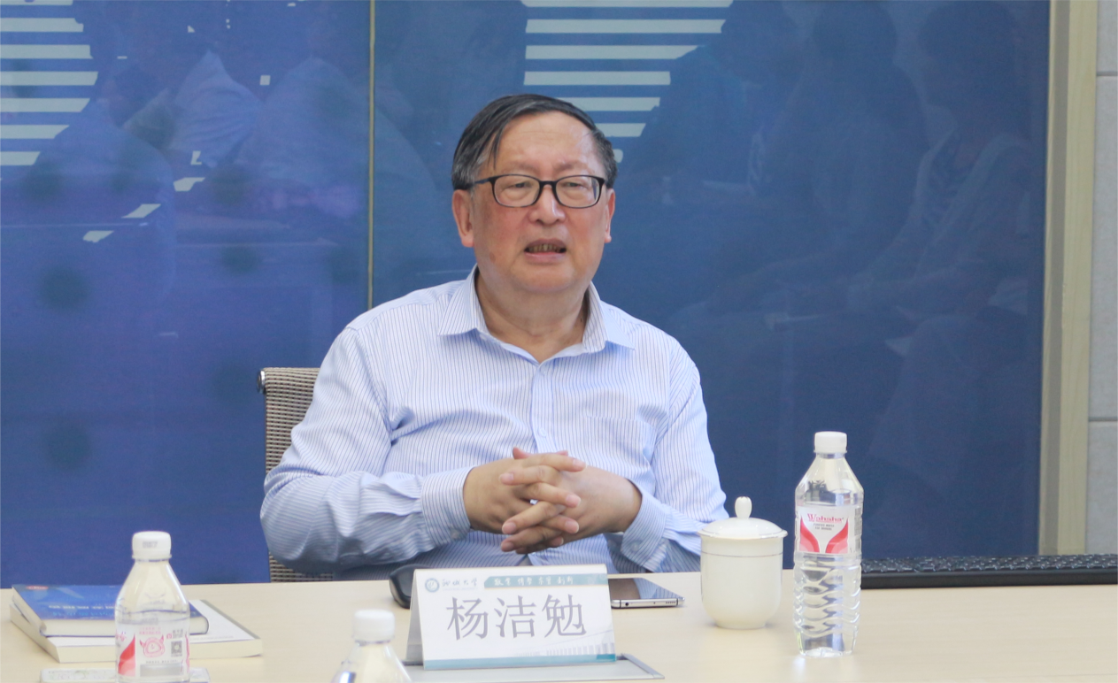 、外国语学院、政治与公共管理学院师生以及天津师范大学、吉林大学博士生师生参加活动。 杨洁勉围绕“专业再造和对标赶超”“学有专长和学以致用”“国际交流和二轨对话”“基础研究和决策咨询”四个层面展开,呼吁构建站在新起点上的区域国别学。针对全国开展的国别区域研究工作,他指出要随着形势的发展和国家需要的变化,补缺、深化和交叉跨界发展区域国别研究。杨洁勉结合自身治学经验提出,山东省地处中国改革开放前沿,要在中国“强起来”和“走向世界舞台中央”的历史进程中做好区域国别研究,要抓住机遇、做出成绩和应有贡献。杨洁勉充分肯定了第一版主