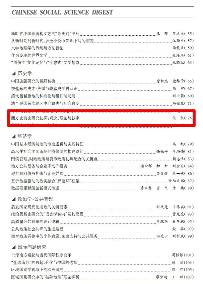 倪凯副教授撰写的文章《西方史前史研究初探:观念、理论与叙事》被《中国社会科学文摘》2024年第7期转载。该文原载于《史学月刊》2024年第4期。 《西方史前史研究初探:观念、理论与叙事》深入探讨了西方史前史研究的发展历程、理论框架与叙事方法。文章指出史前史作为历史研究的一个特殊分支,起源于19世纪中后期,它突破了传统基督教圣经时序的限制,显著扩展了历史研究的时间范围。史前史研究结合了地质学、古生物学、人类学、考古学、历史学和遗传学等多学科知识,形成了独特的研究体系。 文章回顾了史前史研究的早期阶段,这一时期研究倾向于使用单一理论来构建统一的史前叙事,试图解答人类起源和文明起源的重大问题。20世纪60年代以后,史前史研究开始转向更加注重事实考证的方法,生态学、经济学、放射性碳测年法、象征主义、分子遗传学以及全球视野等成为研究者构筑史前叙事的重要工具。文章还讨论了史前史研究的多元化,包括过程考古学和后过程考古学的兴起,以及它们对史前文化系统过程阐释和文化进化理论的批判。特别指出了后现代主义思潮对史前史研究的影响,强调了历史阐释的多元性和象征性的普遍存在。 进入21世纪后,史前史研究方法更加科学和客观,基因科学和脑科学的运用为史前叙事提供了新的视角。《剑桥世界史前史》等百科全书式的著作的出现,标志着史前史研究的成熟和系统化。此外,文章也概述了中国史前史研究的发展情况,从20世纪30年代开始引入西方的史前史观念,到新中国成立后受马克思主义理论影响的研究,再到改革开放后取得的一定成绩,但整体上史前史研究在中国仍未得到足够的重视。 总体而言,史前史研究经历了从思辨到实证,从单一理论到多元方法,从地方到全球视野的转变,不断丰富和深化了我们对人类历史早期阶段的认识。