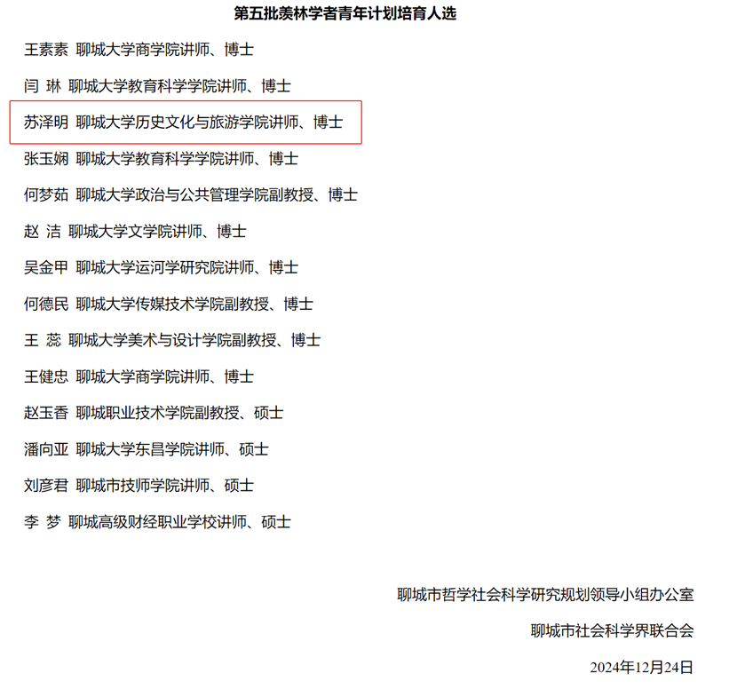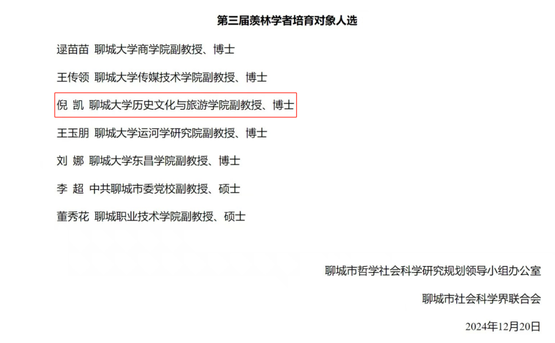 近日,聊城市哲学社会科学研究规划领导小组办公室、聊城市社会科学界联合会公布了第三届羡林学者培育对象人选、第五批羡林学者青年计划培育人选。第一版主