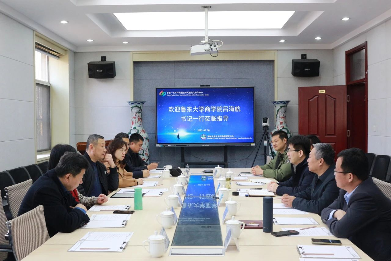 3月8日,鲁东大学商学院党委书记吕海航率队莅临太平洋岛国研究中心考察交流。 座谈会上,中心主任赵少峰教授介绍了太平洋岛国研究中心的发展概况,在服务国家战略和区域经济发展方面做的工作,尤其在海洋治理研究、蓝色经济模式以及人才培养等领域开展的探索,并专门交流了“六位一体”的区域国别人才培养模式。赵少峰介绍了中国—太平洋岛国应对气候变化合作中心的工作,通过建立“气候-生态-经济”三位一体评估体系,为太平洋岛国制定绿色低碳区等建设方案,践行人类命运共同体理念。 鲁东大学商学院党委书记吕海航对中心在咨政建言、人才培养、国际交流等方面取得的成就给予高度评价,围绕“一带一路”倡议框架下的海洋经济合作展开深入研讨,重点就学科交叉融合、科研资源共享、产学研协同创新等议题交换意见。吕海航表示,将充分发挥鲁东大学在商科领域的学科优势与研究中心的特色专长,着力构建优势互补、协同创新的合作格局。 烟台市芝罘区海洋发展和渔业局副局长郭永胜结合地方实践,表达了通过研究中心平台与太平洋岛国开展渔业合作项目的强烈愿望。聊城市财金能源发展有限公司总经理邢晨辉从企业视角,就科研成果转化路径提出建设性意见。 校融合发展处处长丛振教授就跨校际协同创新机制建设、推进校地合作提出了合作新路径。 安全保卫处汤振、中心副主任梁甲瑞、研究人员陈永金、刘晓临参加座谈交流。