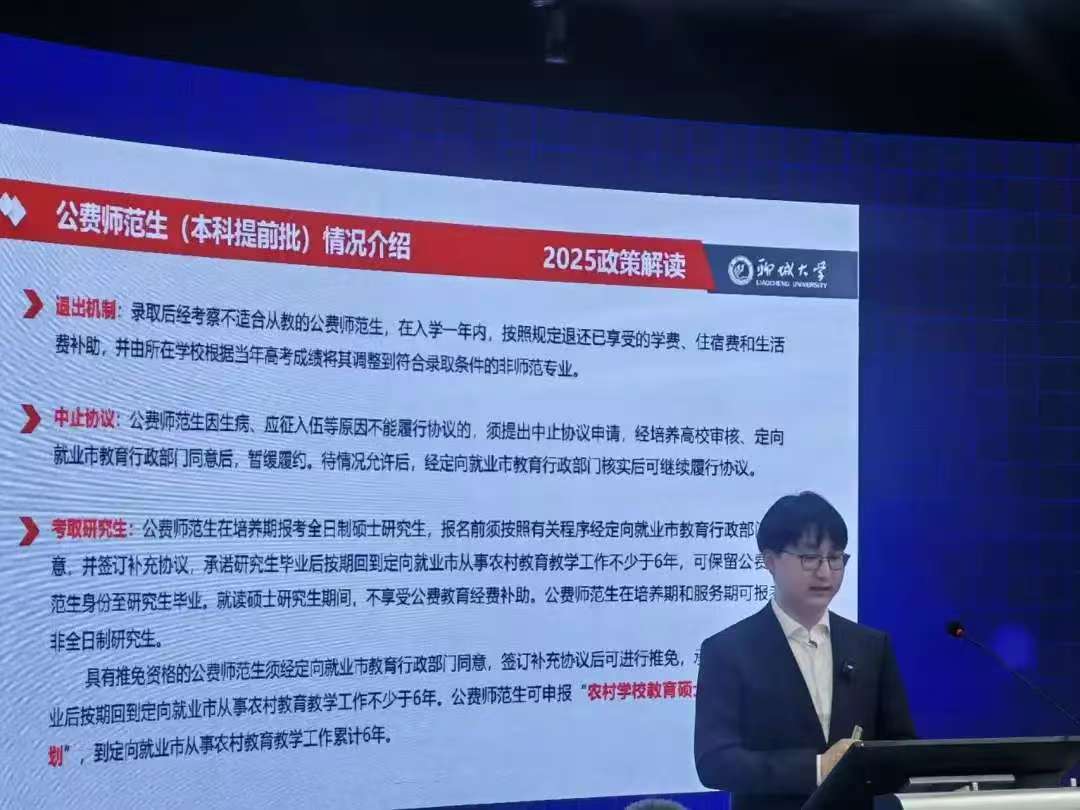 独特名牌。 在政策宣讲中,张云飞聚焦于具体招生政策,对各项政策予以多方位讲解,通过深刻刨析各项政策机制,细致展现政策的实际运行。在评委提问环节,张云飞结合问题分享自身见解,体现出从容应变的能力,彰显了宣讲教师的风采。 此次比赛不仅能够给予宣讲教师展现自身能力的机遇,还能有效搭建宣讲教师之间学习互动的平台,助推宣讲团队整体队伍建设,为招生工作提供助力。第一版主