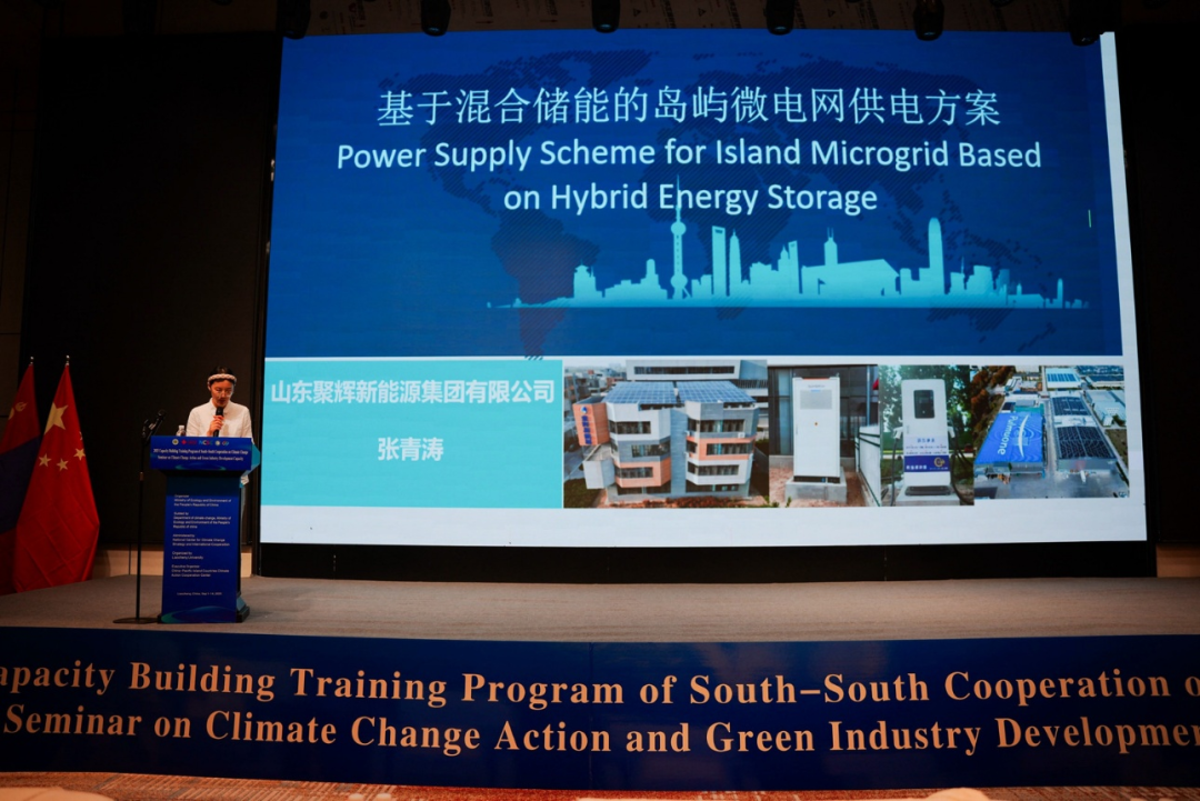 副教授梁甲瑞以《南南合作框架下的中国-太平洋岛国蓝碳合作机制》为题,围绕中太蓝碳合作阐述了中国深度参与全球海洋治理的考量,深度分析了太平洋岛国蓝碳资源现状、面临威胁及生态经济价值,并梳理了双方合作路径与保障机制。最后指出中太蓝碳合作机制建成后,有望成为海上丝绸之路的海洋公共产品,弥补全球海洋公共产品不足的问题。 5日下午,世界大学气候变化联盟(GAUC)首席青年官何超欣(Alice Ho)围绕《全球气候适应中的青年领导力:增强小岛屿韧性》展开主题演讲,介绍了世界大学气候变化联盟的定位、使命及合作网络,重点阐述了“ClimateX”领导力培训、全球青年气候周等项目成果,以及连续四年组织青年代表团参与联合国气候变化大会的实践;并提及联合国气候变化框架公约(UNFCCC)的青年参与机制,分析太平洋小岛屿发展中国家的气候挑战与南南合作方向,并给出了世界大学气候变化联盟的合作支持方案,指出跨学科培训、网络化协作等未来趋势,旨在赋能青年参与气候治理。何超欣女士被聘为中国-太平洋岛国应对气候变化合作中心特聘研究员。 随后,开展了中国-太平洋岛国绿色产业示范企业交流研讨会。山东聚辉新能源公司指出岛屿微电网依赖柴油发电成本高、污染大等问题,详细阐述了混合储能岛屿微电网的架构、运行模式、核心设备,并详细说明了小岛屿发展中国家发展混合储能岛屿微电网项目的实施规划与设备参数,分析了其经济、环境何社会效益,并展示工程案例。山海大象集团则提出发展中国家建筑业发展的限制因素,详解了被动式房屋系统的节能特点以及与发展中国家的适配性,最后展示了装配式建筑的优点、业务布局、生产基地和案例。两家示范企业分别从能源与建筑领域提供了“一带一路”发展中国家绿色产业发展的解决方案。在企业研讨环节,山东麦穗能源科技有限公司、龙口市日升新能源有限公司、香港天天向上网络科技有限公司向研讨班的学员们介绍了中国特色的新能源技术和低空经济,进一步搭建起产学研交流桥梁,助力推动新能源技术落地与行业协同发展。 全天的学习与交流活动既搭建了学术、青年组织与企业间的交流桥梁,又明晰了蓝碳合作、青年赋能及绿色技术创新的实践方向,彰显了中国在全球气候治理和绿色产业发展领域的责任担当,为深化应对气候变化南南合作、推动全球绿色可持续发展提供了务实思路与行动参考。 (作者:苗祎宁)