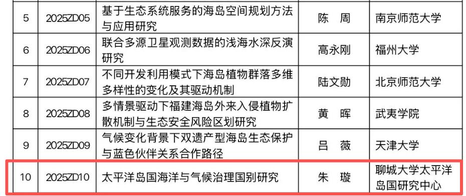 太平洋岛国研究中心朱璇副教授申报的“太平洋岛国海洋与气候治理国别研究”课题成功获批立项。 近年来,中心高度重视科研项目申报工作,大力推进有组织科研活动,着力提升科研项目申报质量与成效。下一步,中心将进一步加大对高水平科研项目的支持力度,推动高质量科研成果产出,为学校高质量发展注入更强科研动力。