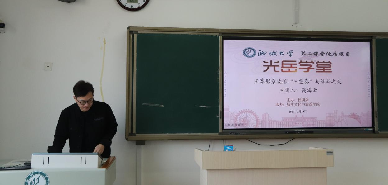 教师高海云担任主讲人,讲座题目为《王莽形象政治“三重奏”与汉新之变》。 高海云以王莽形象塑造与改制思想为核心,系统阐释了汉新之际学术思想转型与政治权力运作的内在逻辑。他以传统史学评价为切入点,梳理了王莽的形象变迁脉络,并结合经济思想史、制度史等视角,深入剖析其政治形象的建构路径。他分析了儒生、方术之士与政治投机者在王莽代汉过程中的不同作用,为理解秦汉学术从政治儒学向儒学政治的转变提供了研究思路。 本次讲座内容丰富、立意深远,不仅开阔了同学们的学术眼界,更为历史形象建构与史料批判运用提供了重要方法论参考,助力同学们在学术道路上行稳致远。 主讲人介绍 高海云,副教授,硕士生导师,主要从事先秦秦汉史、古典学、中国思想史的研究。入选“光岳英才”人才工程、“羡林学者”人才培育工程,教育部全国研究生教育评估监测专家;获“羡林学者”称号、“聊城市青年学术带头人”称号,受聘为东夷文化研究中心研究员、黄河学研究院研究员,季羡林学院荣誉导师。近五年,主持国家社科基金项目2项,主持山东省社科项目1项,主持江苏省科研与实践计划项目1项,主持厅局级重大项目1项,主持厅局级平台专项2项;参与国家社科基金重大项目1项、国家社科基金重点项目1项、国家社科基金年度项目1项,省部级项目3项。出版专著《秦汉政权合法性理论的建构与演变》等多部,公开发表学术论文二十余篇,获得厅局级以上科研奖励6项。