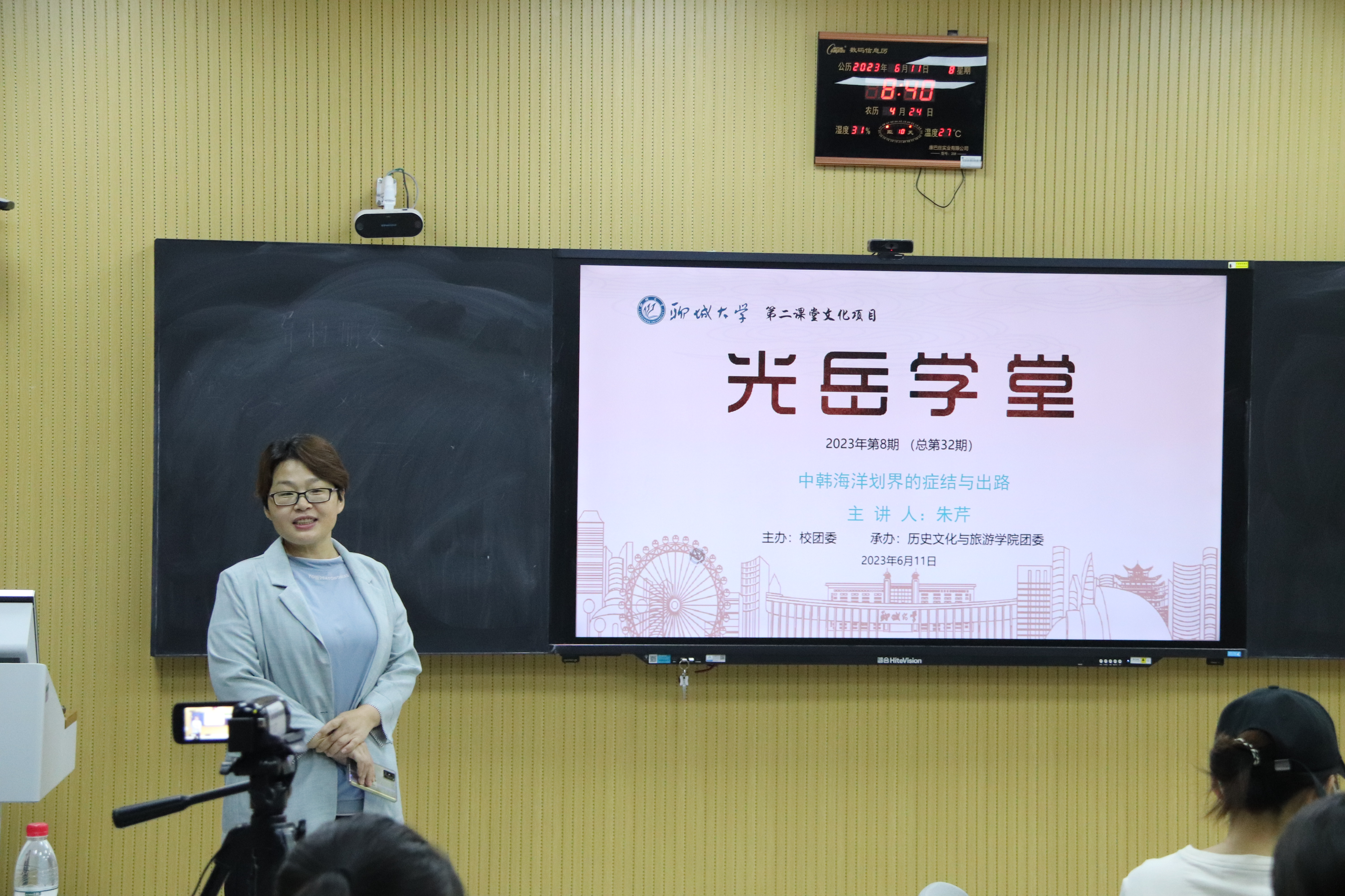 王作成副院长主持。本期课程题目为《中韩海洋划界的症结与出路》,复旦大学朱芹老师应邀担任主讲人。 朱芹老师主要围绕“世界海洋秩序变迁与海洋权益诉求”、“划界规则与划界方法”、“中韩权益主张”等方面来讲解中韩海洋划界的症结与出路。在海洋秩序变迁方面,朱老师根据学界已有成果,将世界海洋秩序划分为区域性无主时代、向全球性转型的霸权化时代、霸权主导与多国治理时代。其间,朱老师引用大量专业地图向同学们直观展示出韩海洋划界规则与方法,并引用地理学、国际法学、国际关系学等多学科知识讲解中韩在海洋方面的权益主张与中韩海洋划界的症结。在中韩海洋划界症结与出路这个问题上,她提出,伴随国际形势的变化,中韩海洋划界问题也将出现新的变动。新时代下提出的“海洋命运共同体”理念既是中国对未来海洋取向与实力趋向的一种叙事,也是对世界海洋规则、秩序与海权的一种塑造。我们倡导外交协商、建立平等互利、共商共建共享的新型海洋秩序。朱老师立足于问题意识,根据研究不断查找资料、反复求证,启发同学们史学研究要将宏观视野与微观分析、理论深度与历史厚度、学理分析与现实关怀结合起来。本期光岳学堂的举办,不仅让同学们了解到有关中韩海洋划界的相关知识,还有助于进一步培养其历史研究要结合时代需求的意识。 朱芹,复旦大学博士、助理研究员,《韩国研究论丛》责任编辑,复旦大学朝鲜韩国研究中心、中欧关系研究中心学术行政助理。韩国西江大学访问学者,美国霍普金斯大学访问学者。研究方向为中美与朝鲜半岛关系,朝鲜半岛独立运动史,中韩海洋问题。出版学术专著1部(《独立与依附:李承晚之外交独立思想》),发表SSCI等核心学术论文10余篇,撰写多篇半岛时评以及内部报告,主持国家社科后期资助项目1项,参与多项国家社科青年基金项目和上海市社科项目。