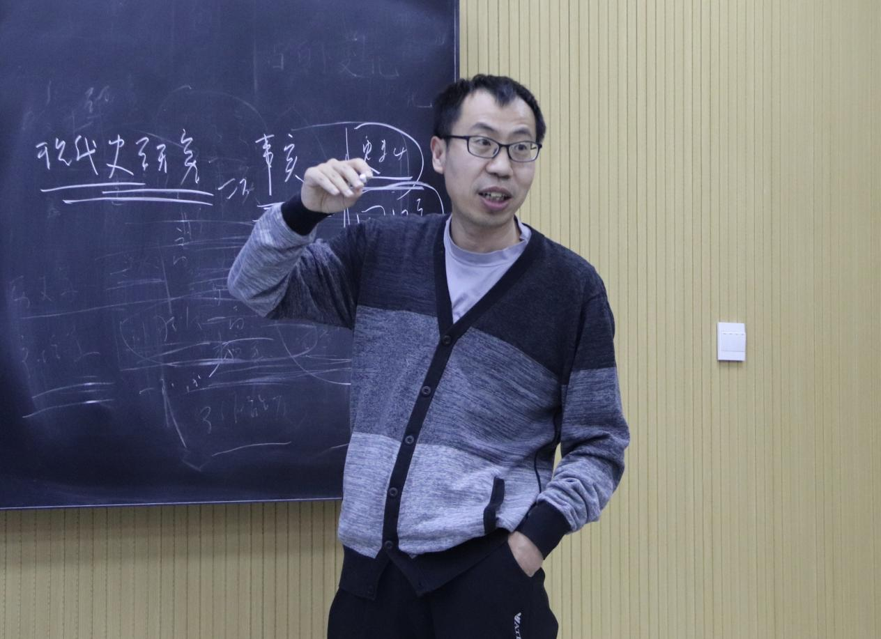 部分师生参会旁听。 会议伊始,徐教授对历史教科书与学术论文、专著之间的区别进行分析,指出史学研究应具备三个方面的能力:阅读文献的能力、搜集史料的能力以及写作能力。接着,徐教授通过对比历史学与社会科学的解释路径,提出史学研究要注重观察时间脉络,注意事件的历时性因素。随后,徐教授表明史学研究要敢于质疑,了解前人研究成果、找到与已有研究能对话的史料是史学研究不可逾越的过程。最后,徐教授结合自身治学经验对史学研究对象、档案运用等问题与与会师生进行探讨,并建议同学们从史实中进行史料长编,扎实做好史学写作基础训练。 本次报告会,增强了同学们的史学探究能力,有利于同学们从知识性学习转入研究性学习,为以后的学术研究开阔视野、拓展思路。 专家介绍 徐进,山东大学历史文化学院教授、博士生导师,山东大学齐鲁青年学者。主要研究领域为中共党史、中国当代史与民国史。先后在《近代史研究》《中共党史研究》等核心刊物发表学术论文20余篇。2010—2020年曾任教于中国人民大学等高校,期间2014年曾赴德国柏林自由大学任访问教授;2015年曾赴韩国高丽大学任客座教授。
