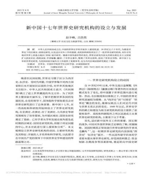 学术简报丨赵少峰、吕浩然:新中国十七年世界史研究机构的设立与发展