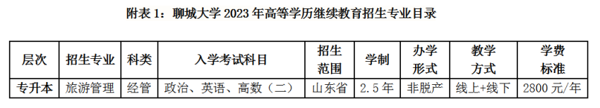 高等学历继续教育旅游管理专业“专升本”办学形式为“非脱产”,灵活采取线上线下相结合的教学方式,缓解在职学员的工学矛盾。 报名及考试 报名时间:8月份 考试时间:10月份(具体时间以山东省教育招生考试院公布的时间为准) 报名网址://www.sdzk.cn (山东省教育招生考试院官网) 报名方式:考生登录2023年成人高考网上报名系统(//www.sdzk.cn/)填写个人基本信息、上传个人资料并填报首次志愿,报名资格审核通过后进行网上确认缴费,完成报名工作。 注意事项 1.报名上传照片时切记上传素颜照片(请勿美颜),以免影响入学。 2.填报志愿时必须填写本人正确的联系电话和通讯地址,不要填写校外教学点或招生人员等的联系电话和地址。 3.学费由学生本人按学校缴费说明扫码缴费,切勿委托他人,以免带来非必要的损失。 4.为确保收到相关通知,请保持报名时所填写的电话及微信畅通,亦可登录第一版主